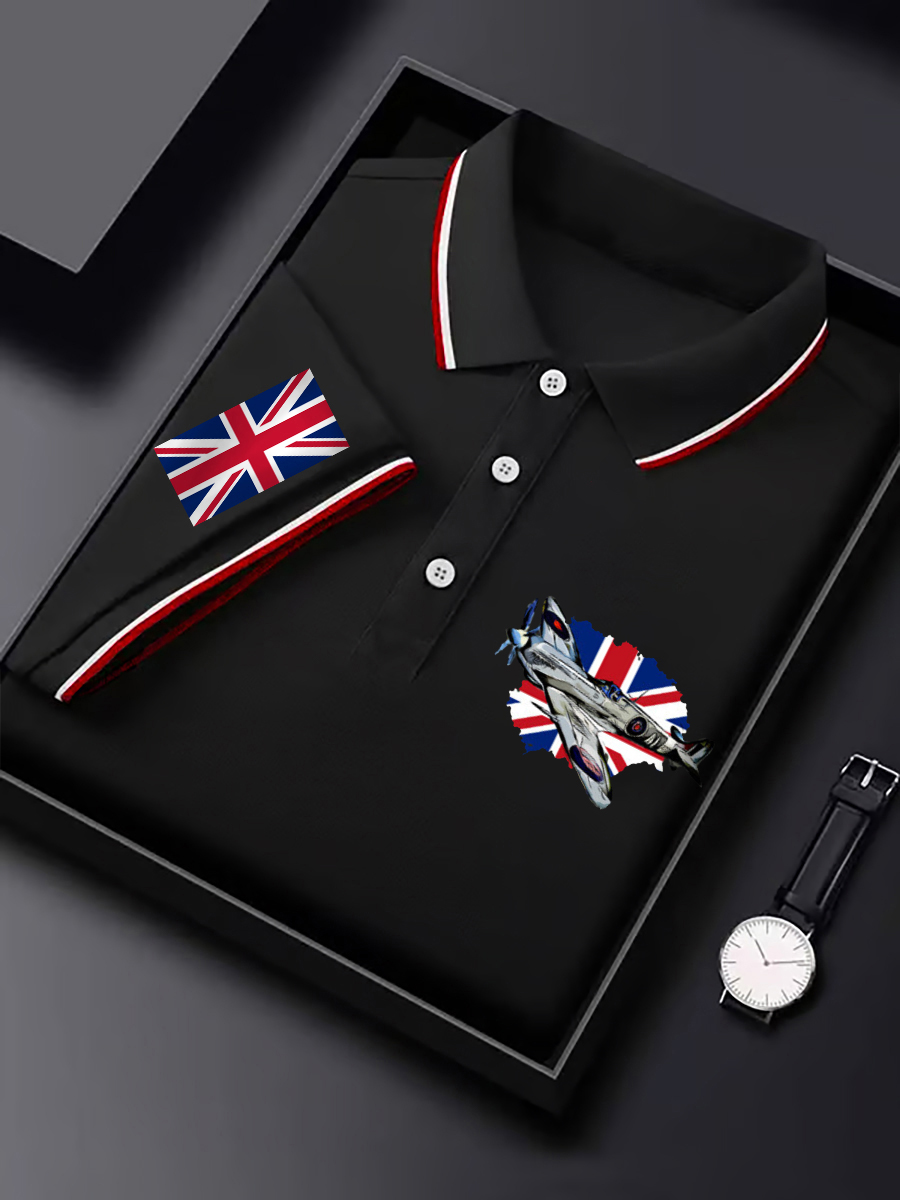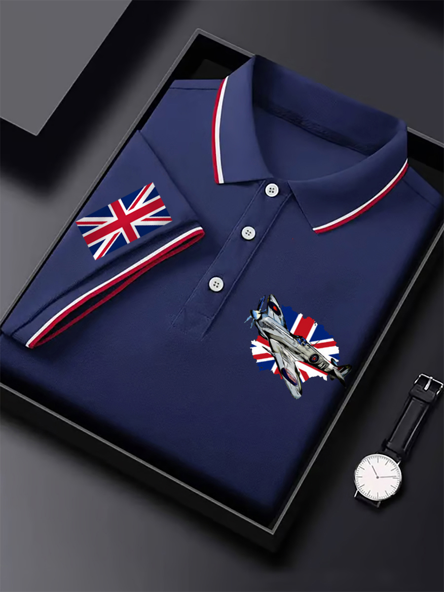 Men's Vintage Supermarine Spitfire British Flag Print Casual Top