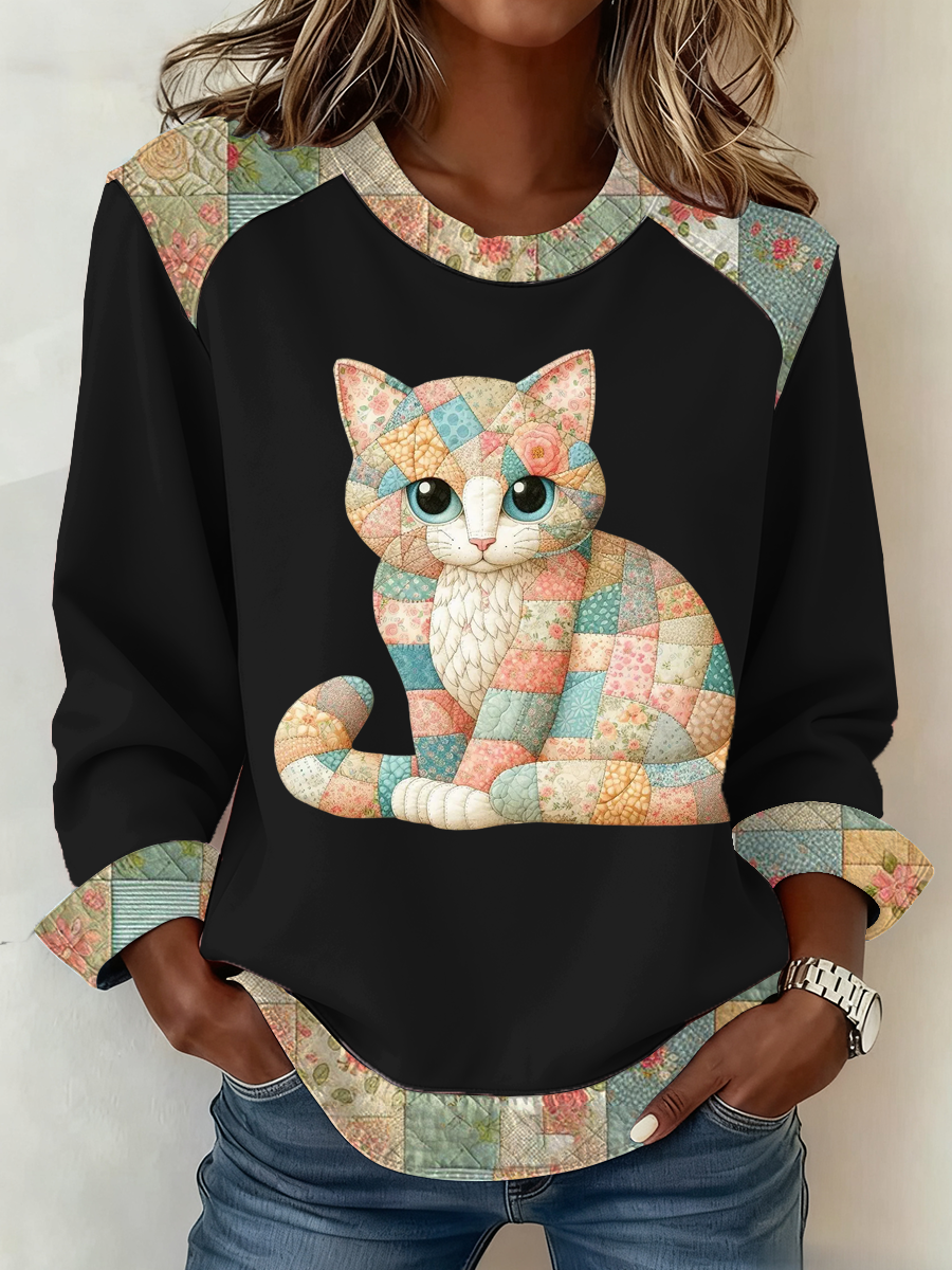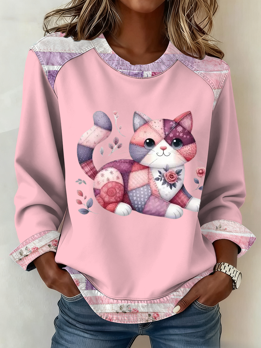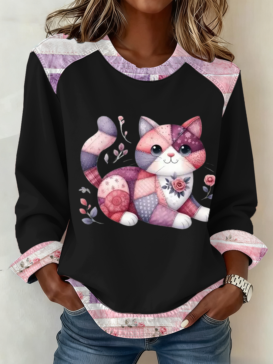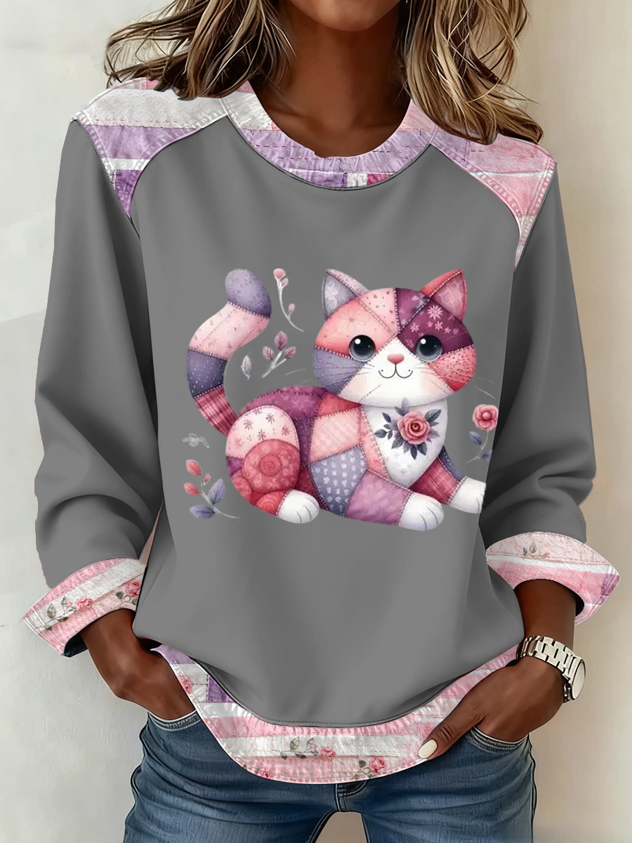 Women's Lovely Dog Denim Patchwork Pattern Sweatshirt