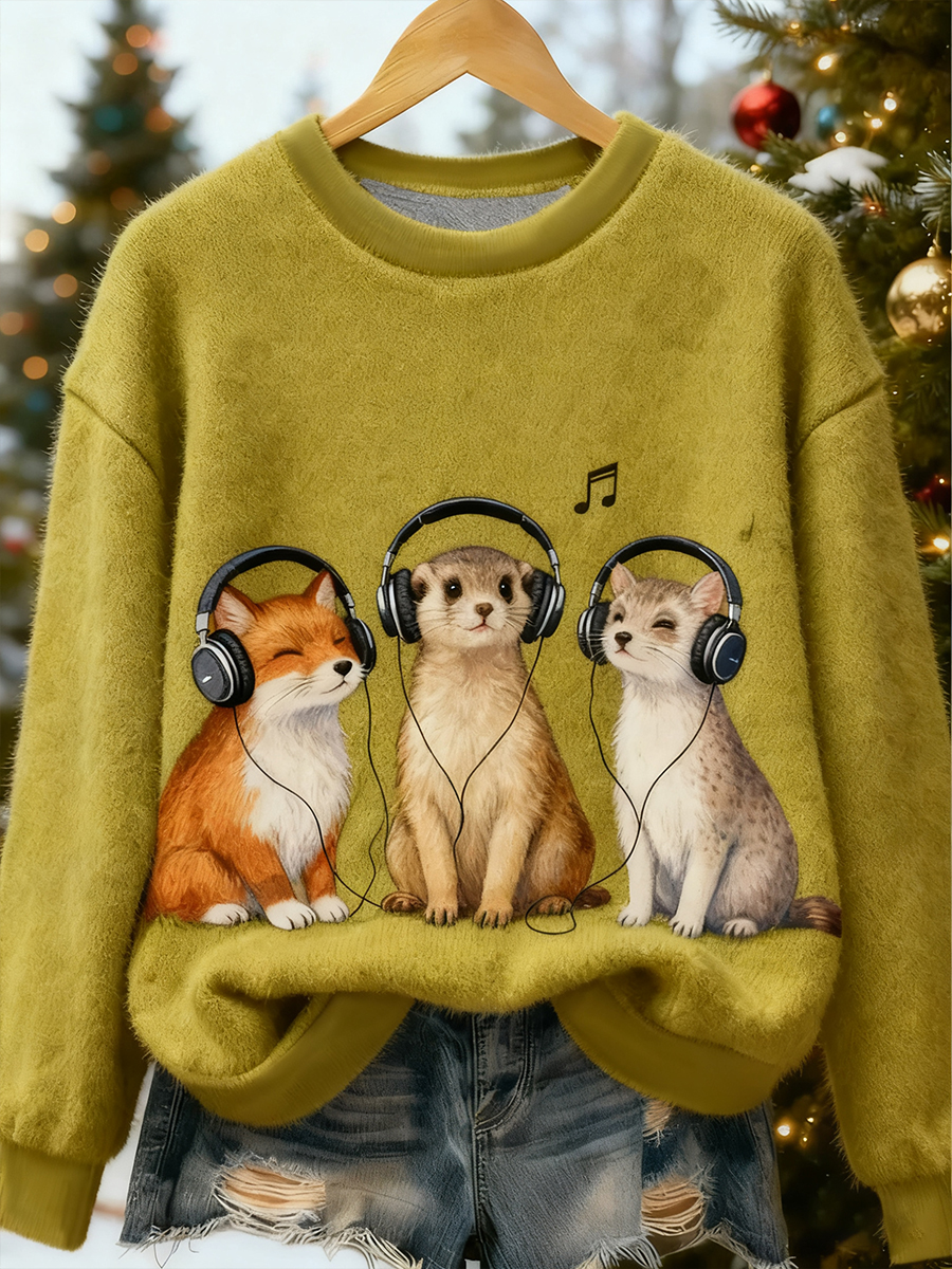 Women's Christmas Cute Rabbit Flannel Hoodie