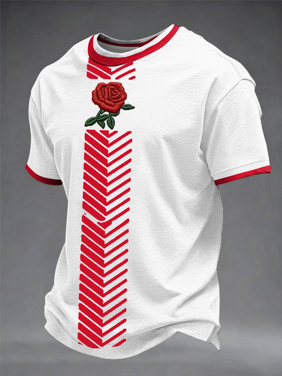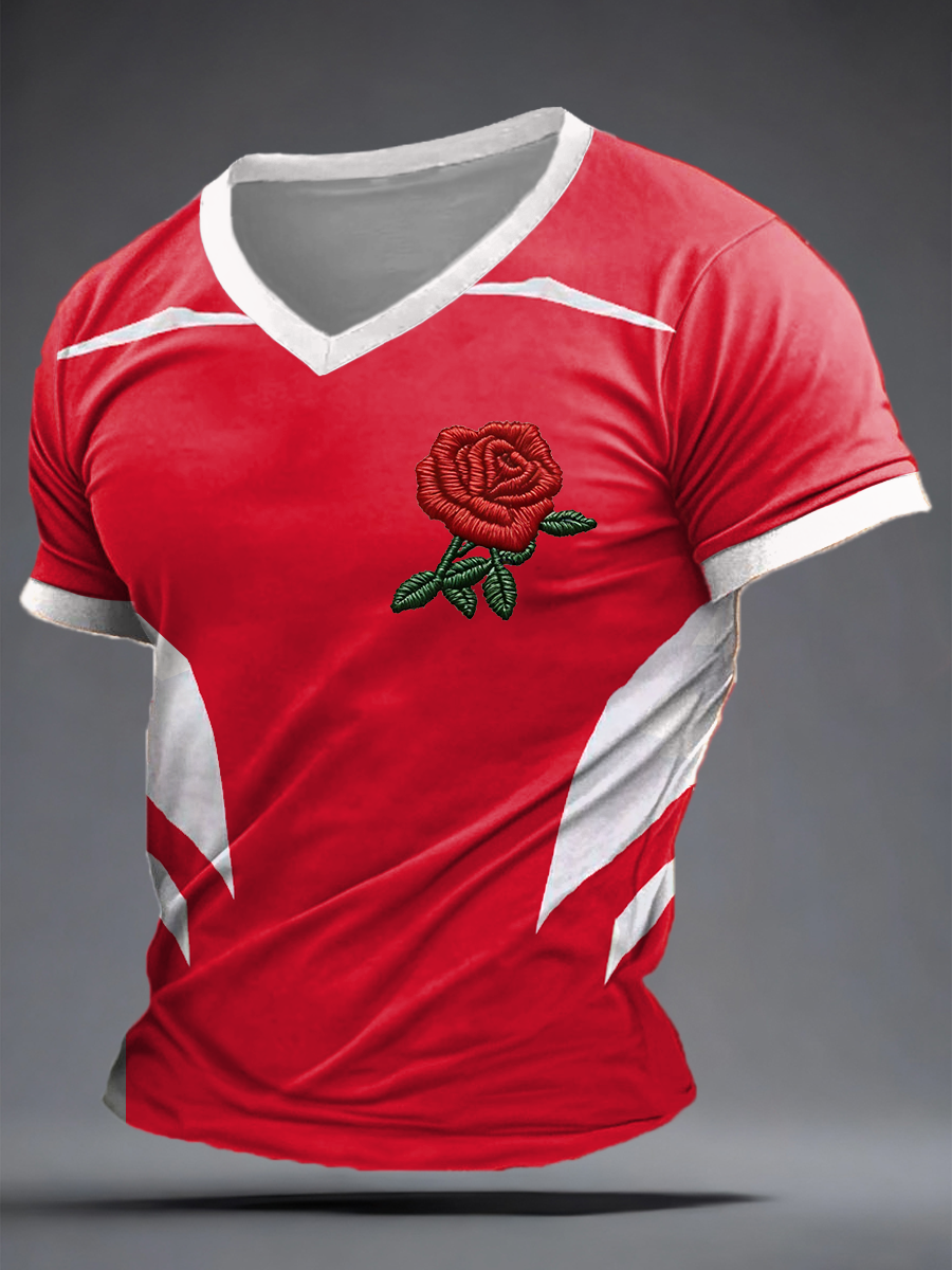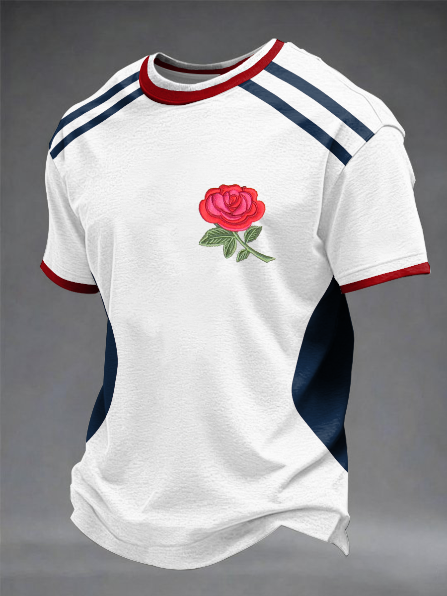 Unisex England Rugby Lover Roses Art Printed T-shirt