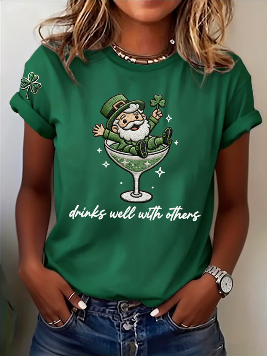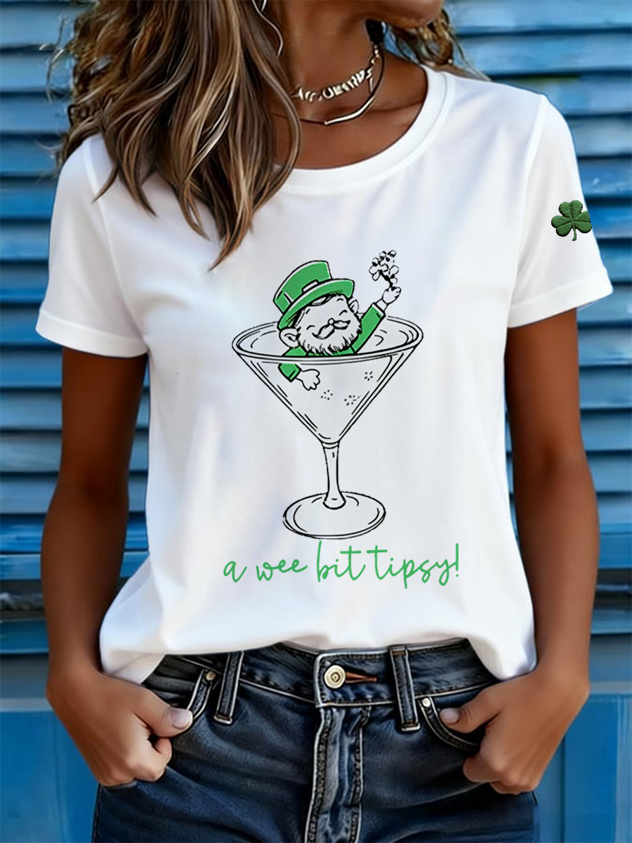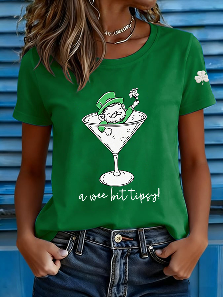 Women's St. Patrick's Day A Wee Bit Tipsy Shamrock Print Casual Tee