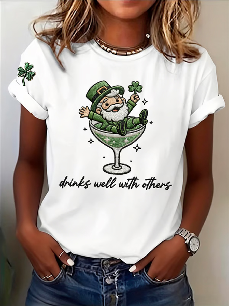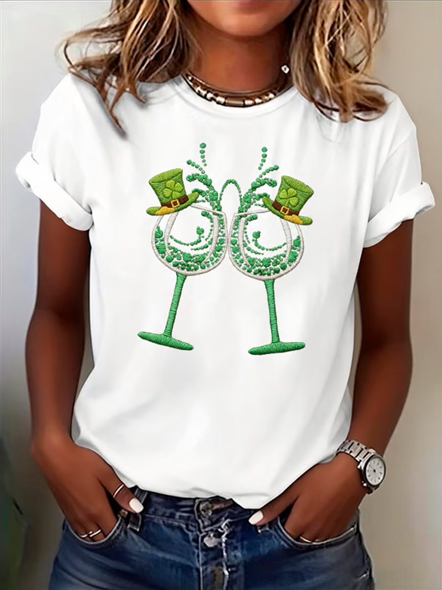 Women's Funny St. Patrick's Day Shamrock Printed V-Neck Short Sleeve T-shirt