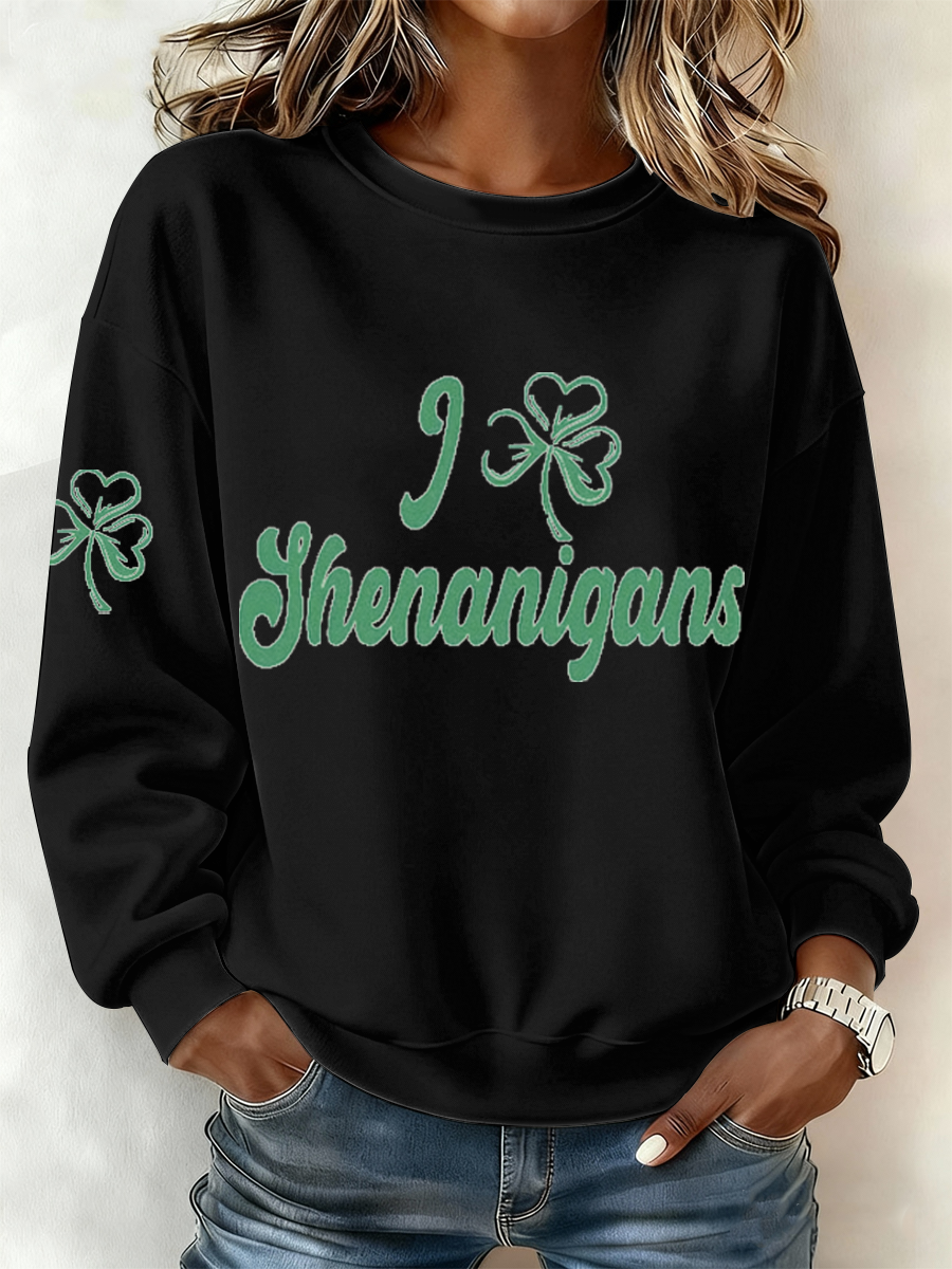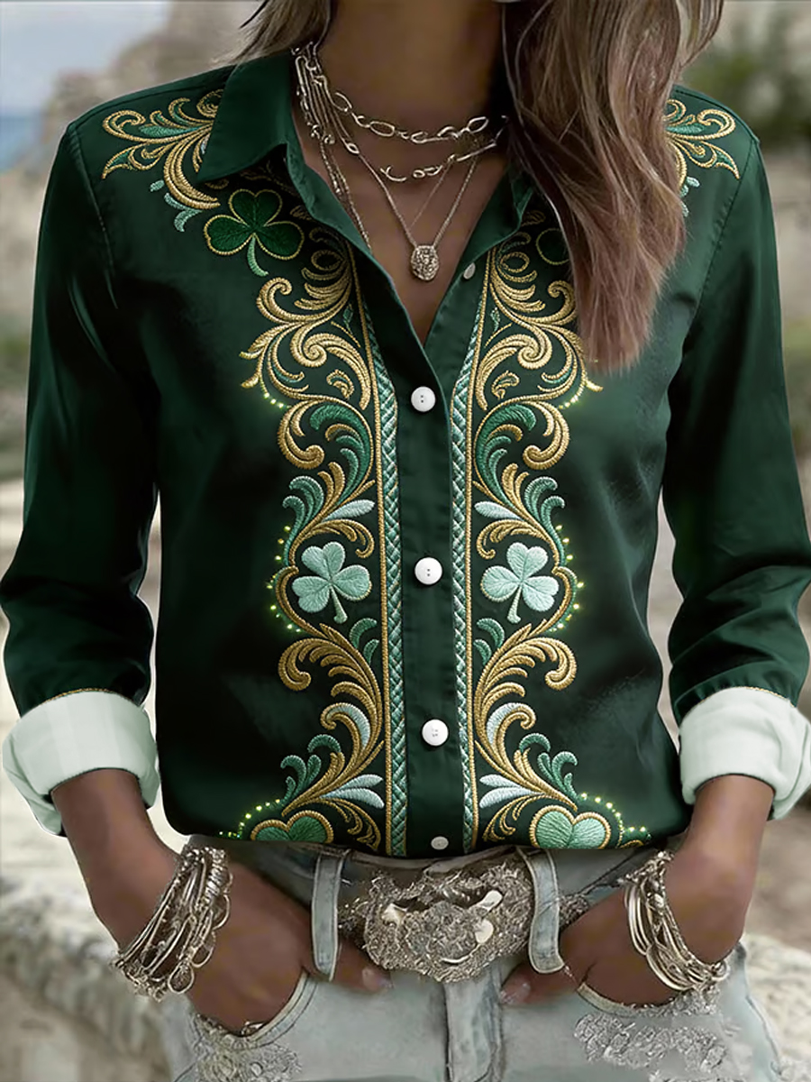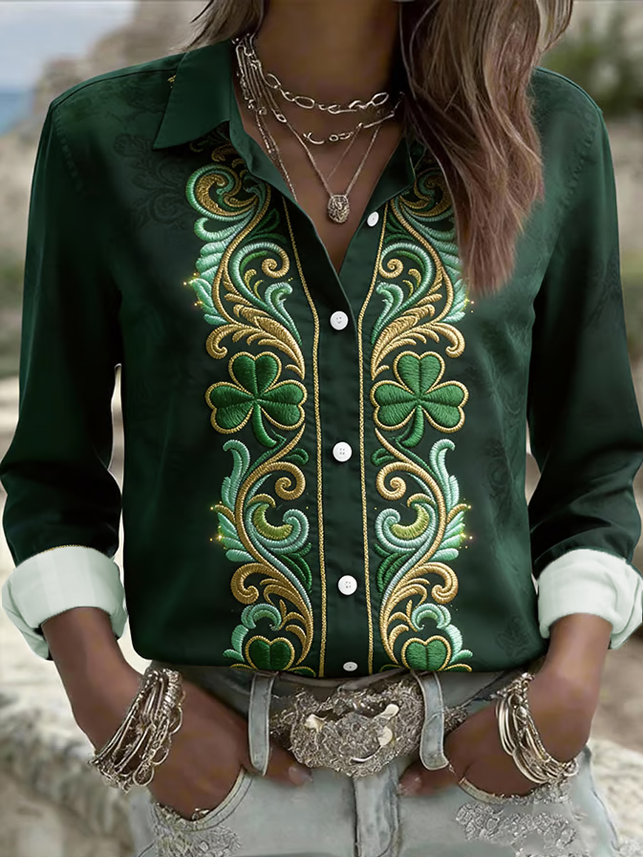 Women's St. Patrick's Day Celtic Knot Shamrock Print Casual Long-Sleeve Shirt