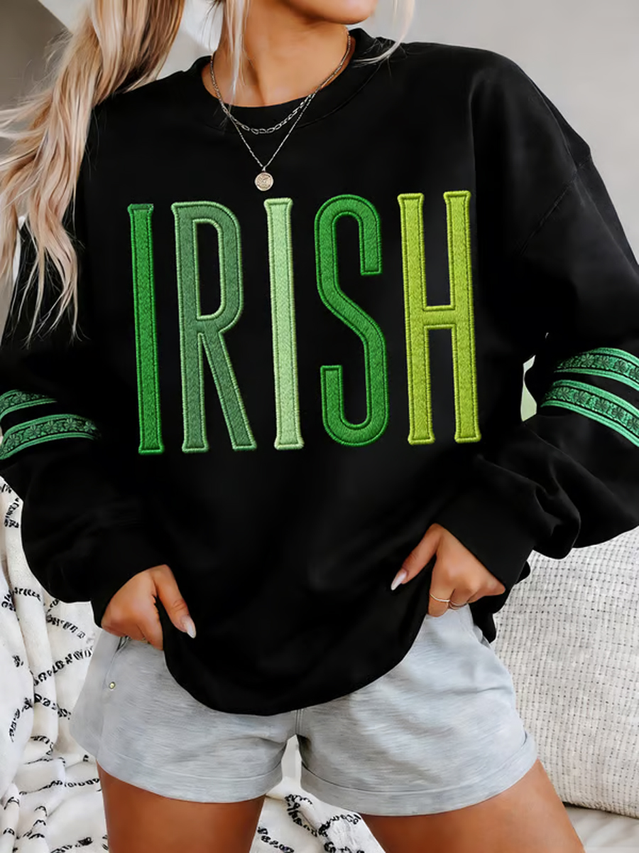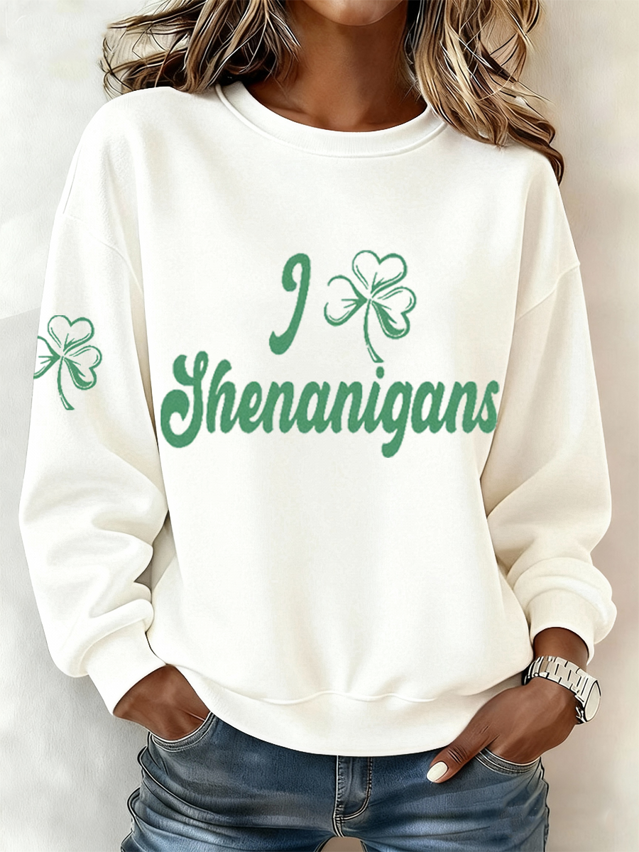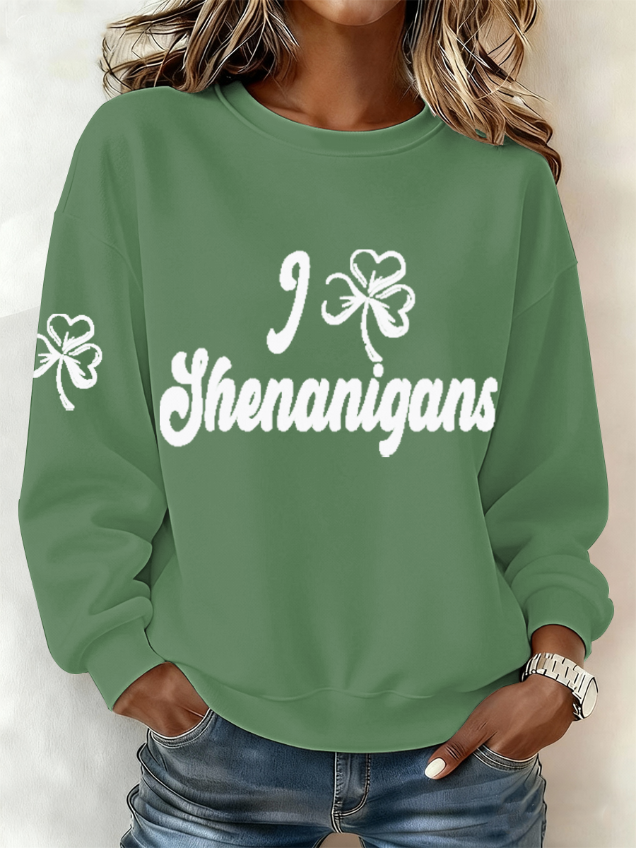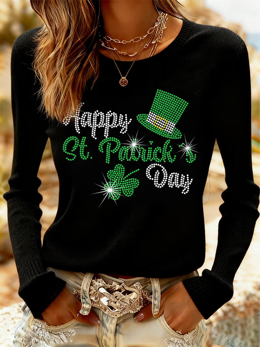 Women's St. Patrick's Day Celtic Knot Shamrock Print Casual Long-Sleeve Shirt