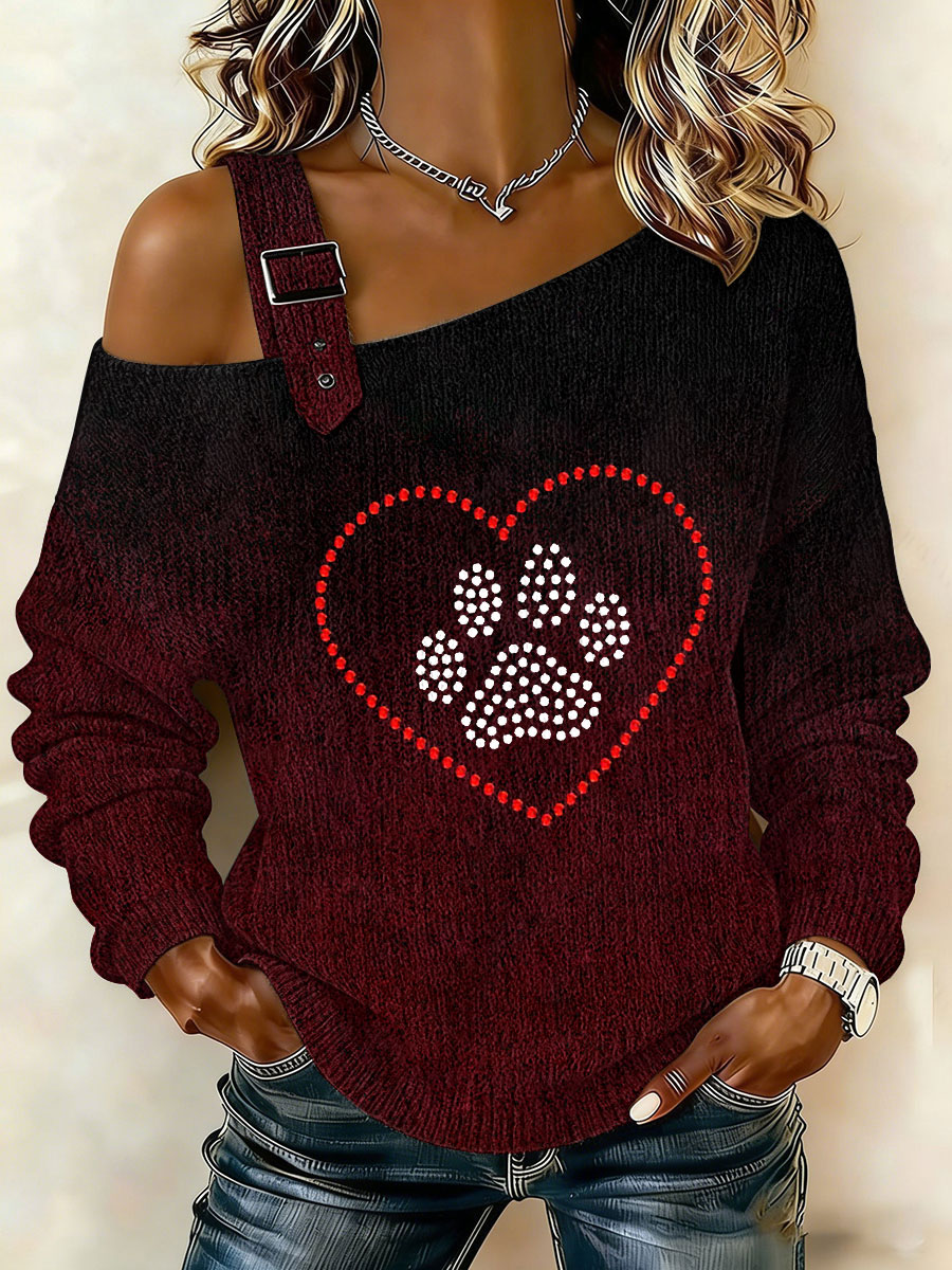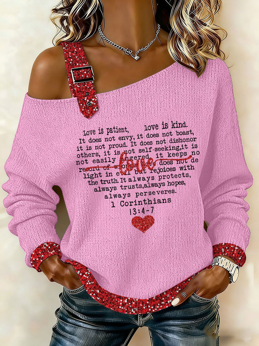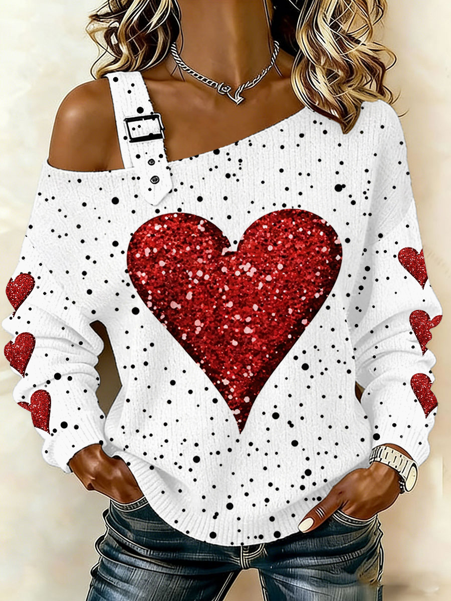 Women's Valentine's Day Retro Oil Painting Love Heart Print Casual Off-Shoulder Top