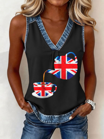 Women's British Flag A Cup of Tea V-Neck Tops